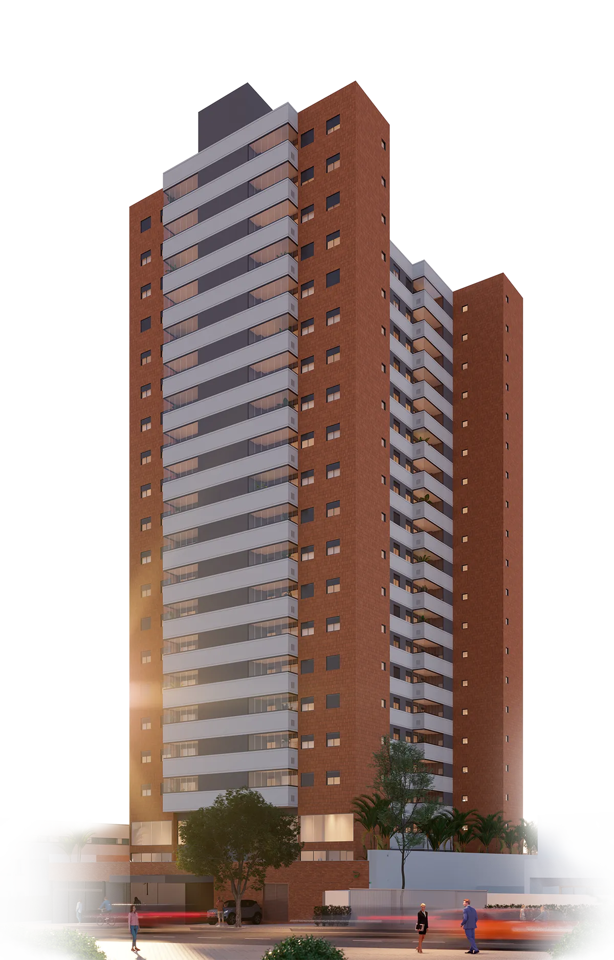 Proteção de perímetro: câmeras, sensores e alarme; sistema interno de monitoramento: halls dos andares, halls do térreo e dos subsolos, garagens, áreas de lazer interna e externa com controle de acesso (facial); portaria com biometria (portas internas): acesso à área de lazer.